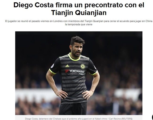迭戈-科斯塔和中超的绯闻传的沸沸扬扬,如果经过几个月的实质性接触之后,切尔西前锋加盟中超一事已经敲定。