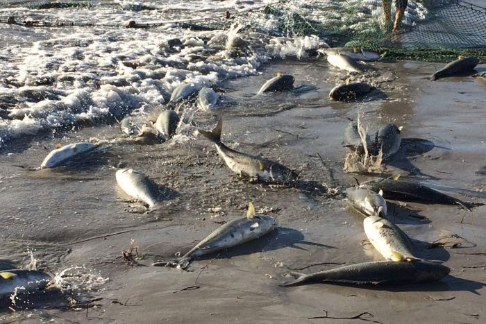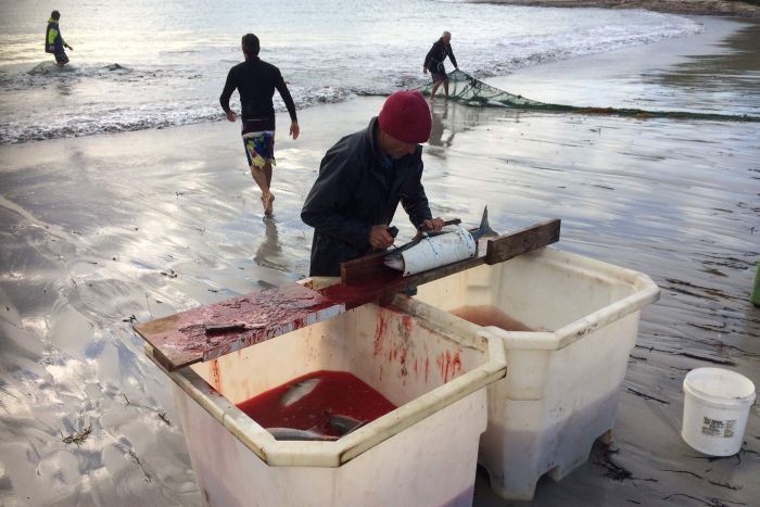 中国青年网消息,5月6日,据澳洲广播电视台ABC报道,澳大利亚西南部有一个美丽的海滩叫Parry Beach。由于环境得天独厚,每年的4、5月份,这里都能吸引多达3000吨的野生三文鱼,成群结队地在这个海湾里休憩、产卵。 Parry Beach的渔民这段时间都愁坏了,这种野生三文鱼和现在澳洲市场上卖的养殖三文鱼不同,由于澳洲人不会烹饪,所以根本没人吃这种野生三文鱼。图为一男子手拿两条野生三文鱼。 这里泛滥的三文鱼,肉体是红色的,腥味比较重,澳洲厨师培训时用的都是养殖鱼,碰到这种野味,完全不知道怎么处理。结果就是怎么做也不好吃,放在菜单上也没人点,久而久之澳洲人对这些野生三文鱼全部失去兴趣了。图为渔民在处理野生三文鱼。 自80年代当地最后的食品加工厂关闭以来,这里的渔业捕捞量从平均一个季节3000吨,下降到75吨至300吨。 因为野生三文鱼数量太多,已经影响到野生龙虾的繁衍,所以当地渔民以50美分(约合3.5元)一公斤的价格出售三文鱼,用作龙虾饵料。图为当地渔民捕捞三文鱼。 西澳渔业发展局目前正在致力于让野生三文鱼走进人们的餐桌,他们已经试行了在小学推广这种未得到充分利用的鱼类,教育学生接受三文鱼。学吃、学做三文鱼,要从娃娃抓起!图为海滩上的钓鱼者。